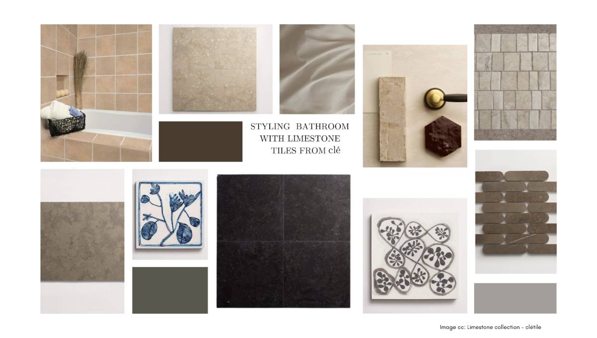 For a contemporary bathroom, the 18-inch square or 12-by-24-inch rectangle formats in limestone bathroom tile from clé's Grand Place collection offer the cleanest architectural reading.