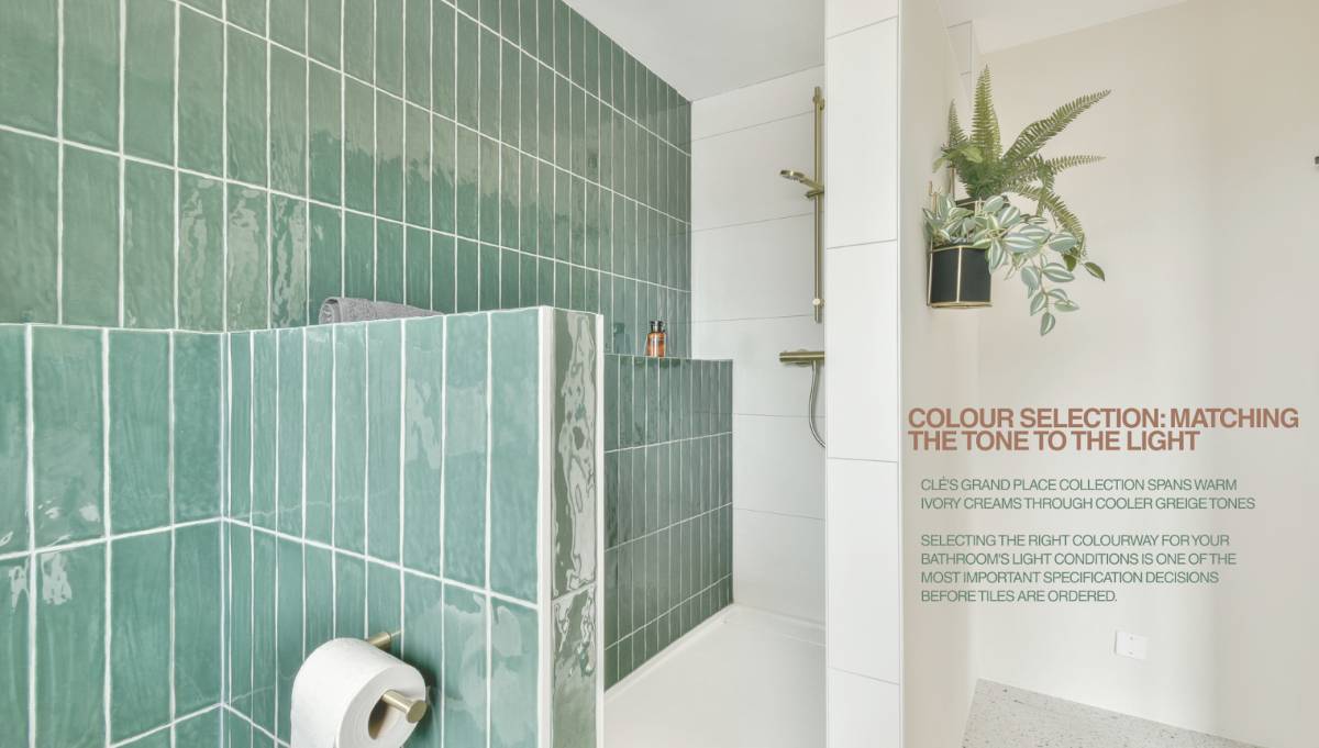 The Grand Place collection spans a range that includes warm ivory tones (Marfil, Ange), mid cream and greige shades (Arbor, Moulin), and cooler pale options (Ceruse, Hermitage, Tabor). These differences are subtle on a sample card and significant once they occupy an entire floor and three shower walls.