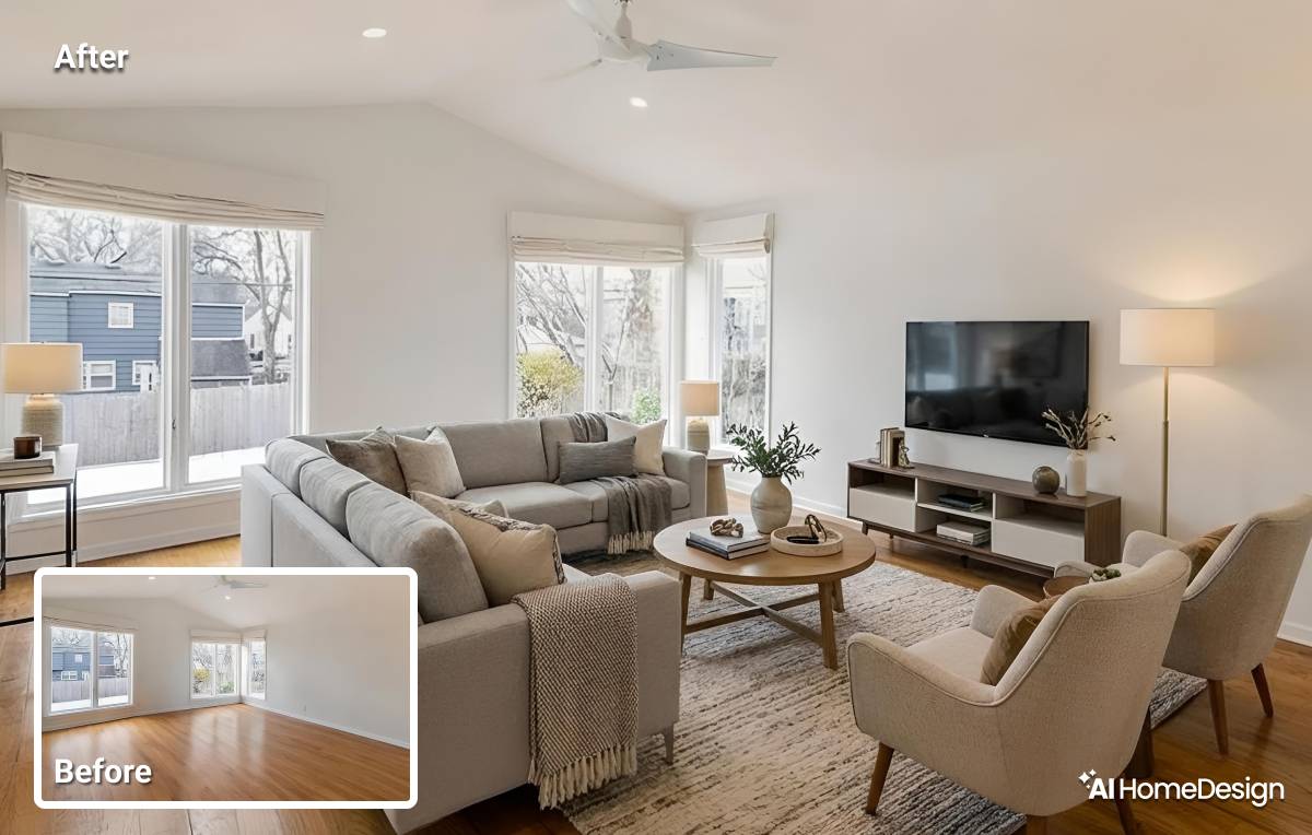 If agents want one single platform for real estate photo editing that covers the full listing workflow, AI HomeDesign supports image enhancement, item removal, day-to-dusk, virtual staging, and renovation features.
